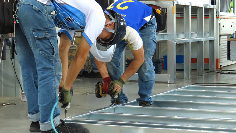 木材2×4工法に用いられる枠材を、厚さ1mm前後の鉄に置き換えた鉄骨CFS工法。